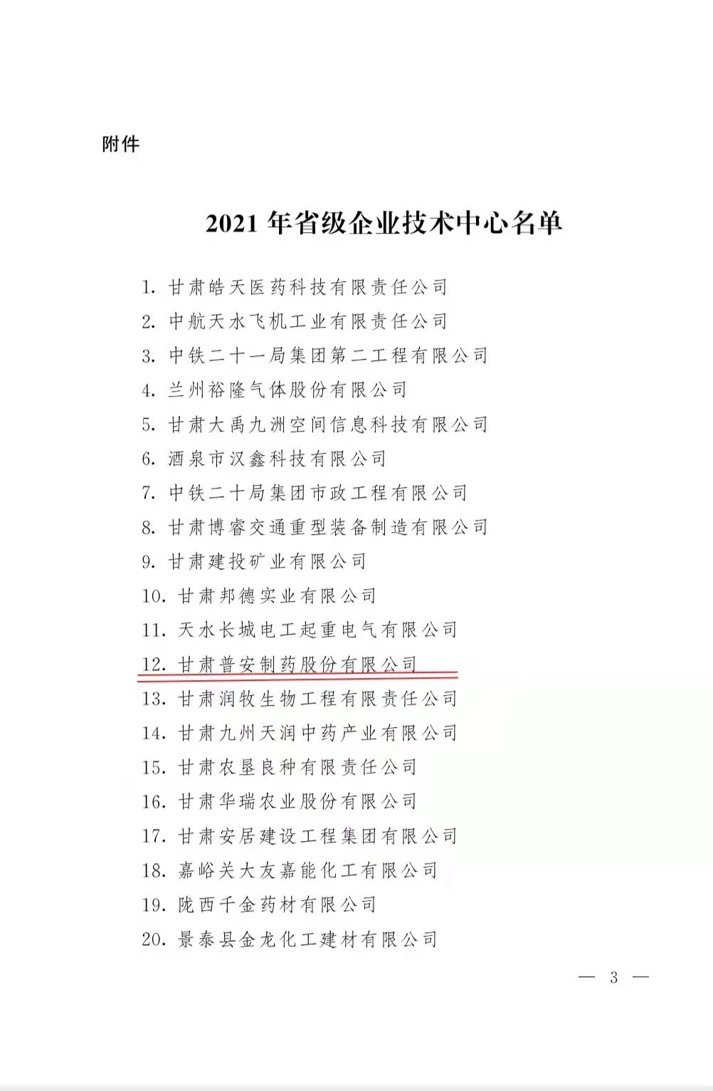​喜報!喜報!普安制藥通過“2021年省級企業(yè)技術中心”認定