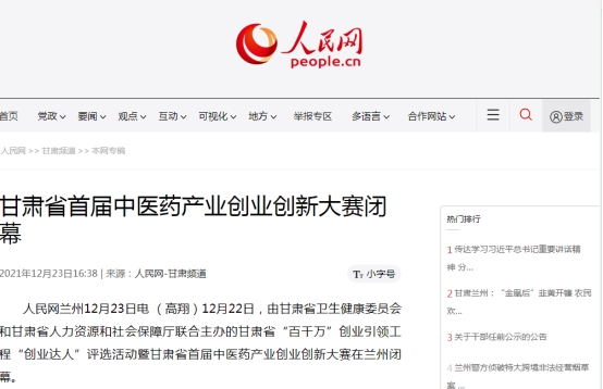 此次大賽也受到了媒體朋友的高度關(guān)注,相繼由人民網(wǎng)、中新網(wǎng)、今日頭條、試聽甘肅、新甘肅、甘肅青春調(diào)頻等多家媒體相繼報道了甘肅普安制藥股份有限公司在此次大賽中獲得創(chuàng)新組一等獎及“創(chuàng)業(yè)達人”稱號的事宜。