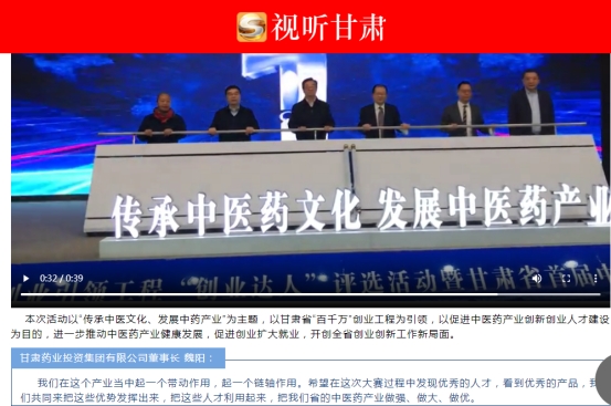 甘肅藥業(yè)投資集團魏陽董事長以特邀嘉賓身份出席此次中醫(yī)藥創(chuàng)業(yè)創(chuàng)新大賽開幕典禮,在觀展后被甘肅省廣播電視總臺、視聽甘肅、今日頭條、甘肅青春調(diào)頻等眾多媒體邀請,就關(guān)于此次中醫(yī)藥產(chǎn)業(yè)創(chuàng)業(yè)創(chuàng)新大賽做了相關(guān)的采訪。