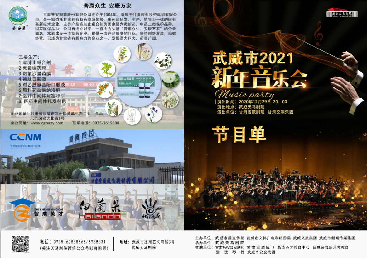 甘肅藥投普安制藥助力“武威市2021新年音樂會”,一起來享受這華美的視聽盛宴吧