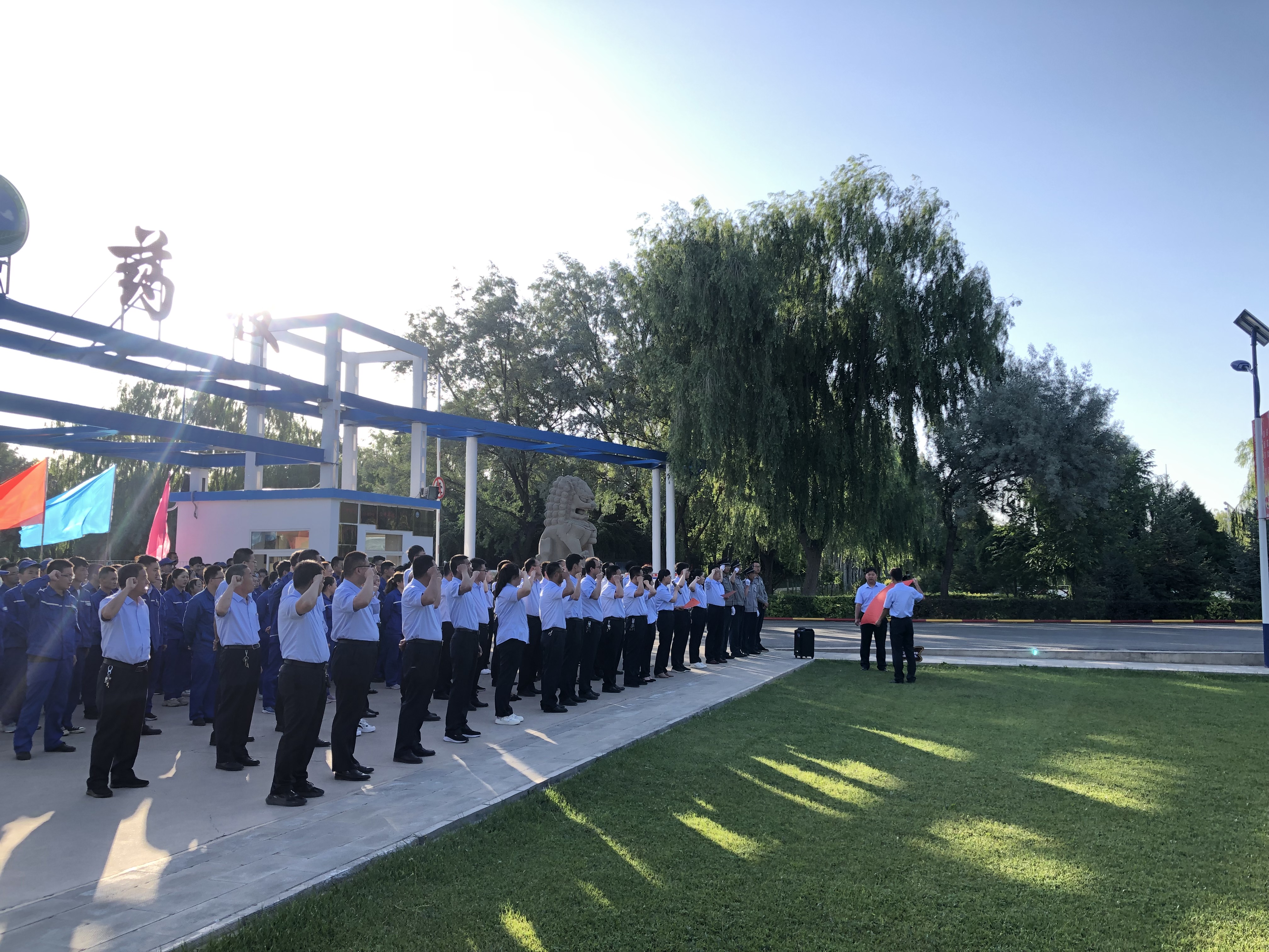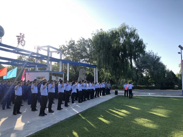 7月1日早7點(diǎn)15分,迎著初升的朝陽,甘肅普安制藥股份有限公司在廠區(qū)大門口前舉行了升國旗與重溫入黨誓詞儀式。