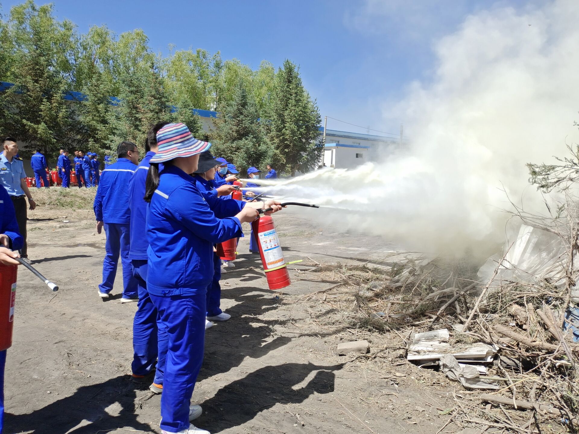 為增強(qiáng)安全消防員實(shí)戰(zhàn)本領(lǐng),培訓(xùn)結(jié)束后,參加培訓(xùn)的人員在后廠區(qū)空曠地帶舉行了滅火演練。在直觀、真實(shí)的火場(chǎng)環(huán)境中,演練人員嚴(yán)肅認(rèn)真、服從指揮,使用滅火器115具,消防水帶6條,嚴(yán)格按照教官培訓(xùn)的滅火器操作步驟和使用方法進(jìn)行實(shí)操滅火。