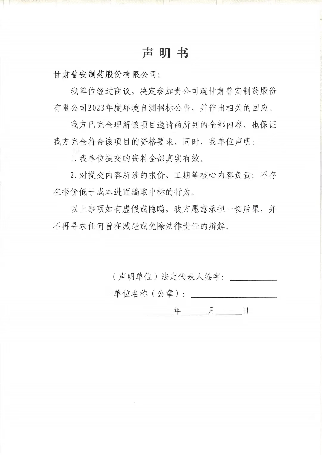 甘肅普安制藥股份有限公司2023年度環(huán)境自測第三方委托招標公告
