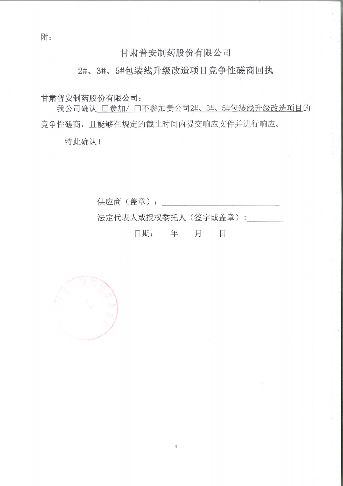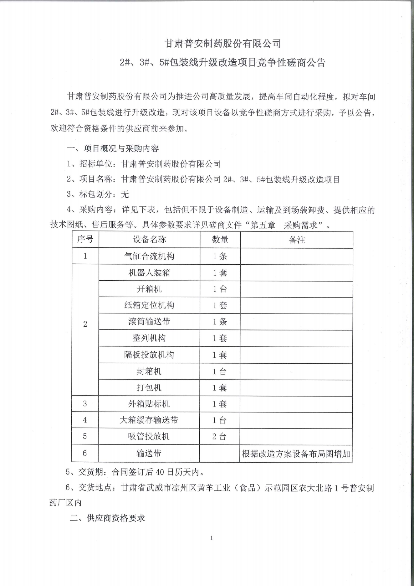 甘肅普安制藥股份有限公司 2#、3#、5#包裝線升級改造項(xiàng)目競爭性磋商公告