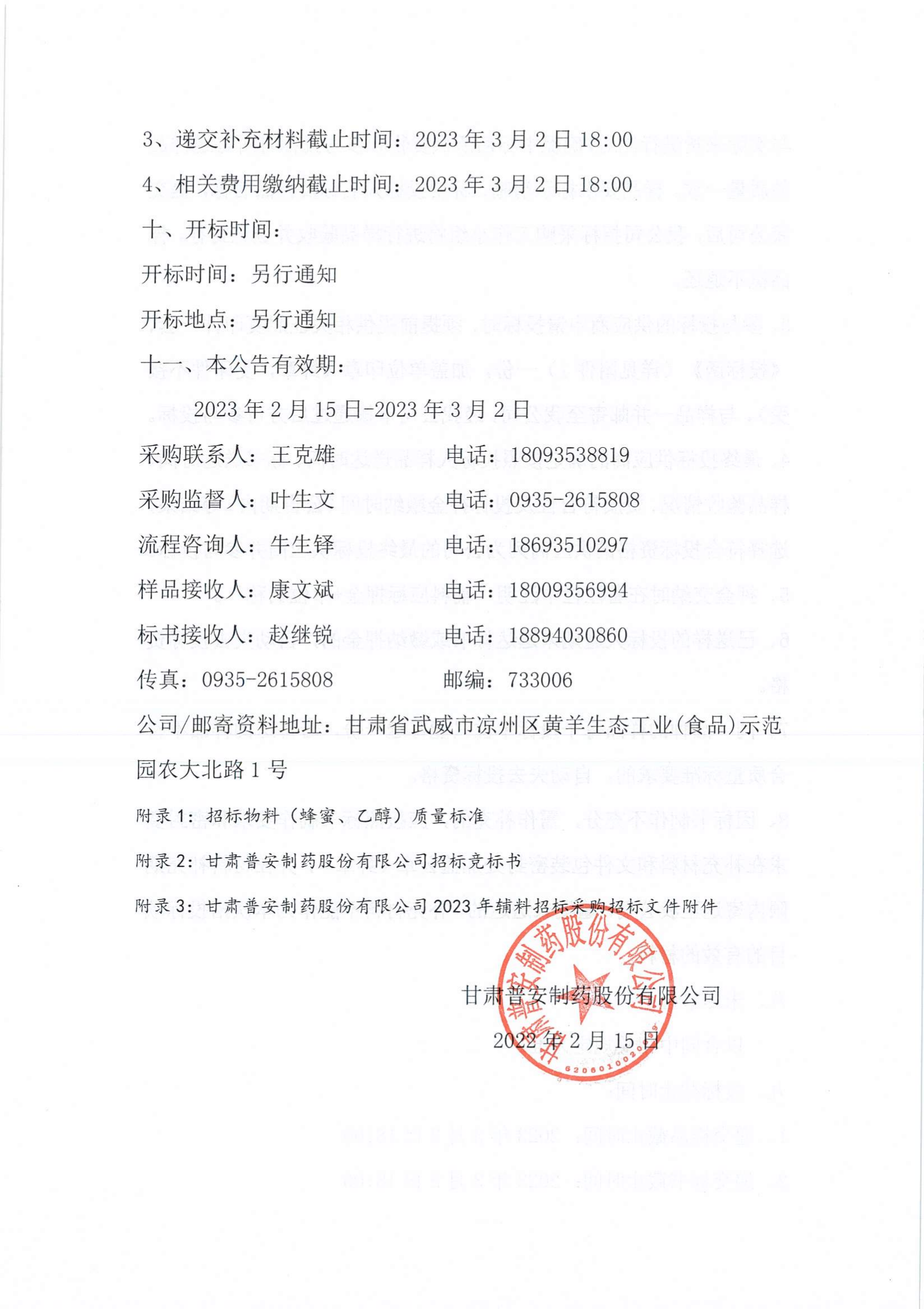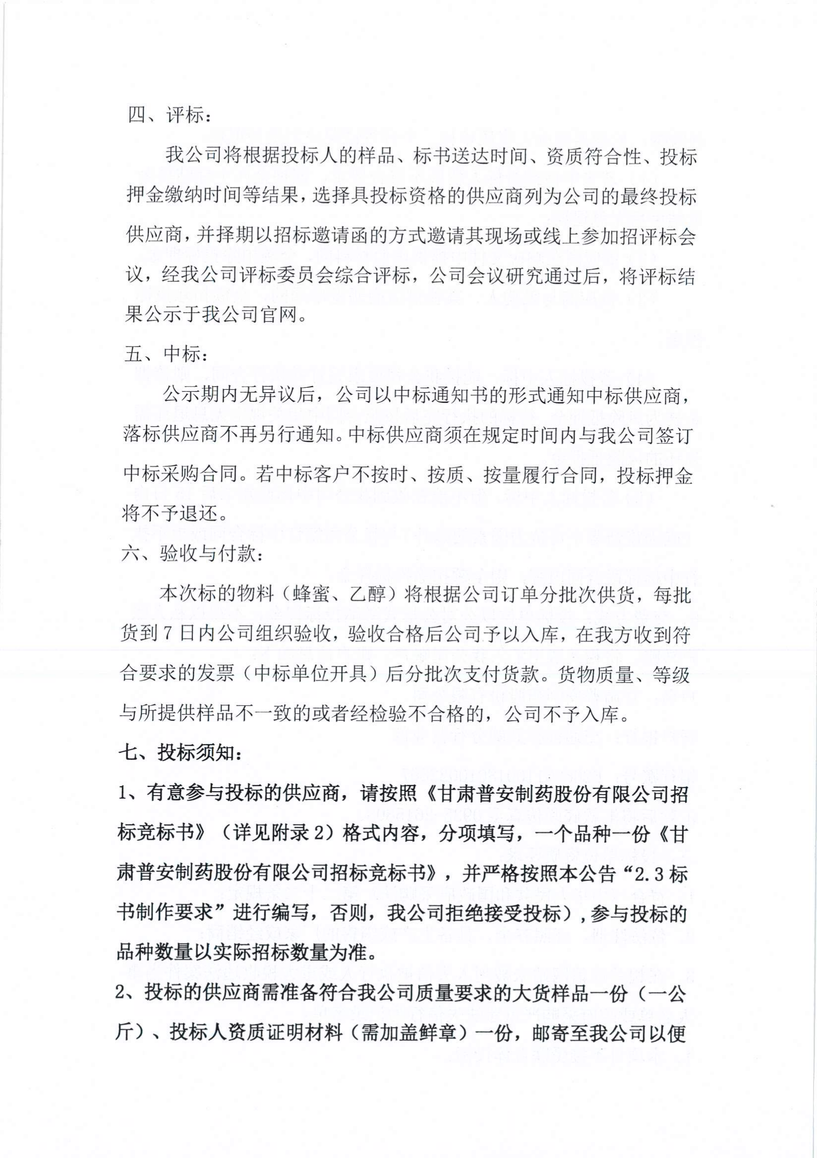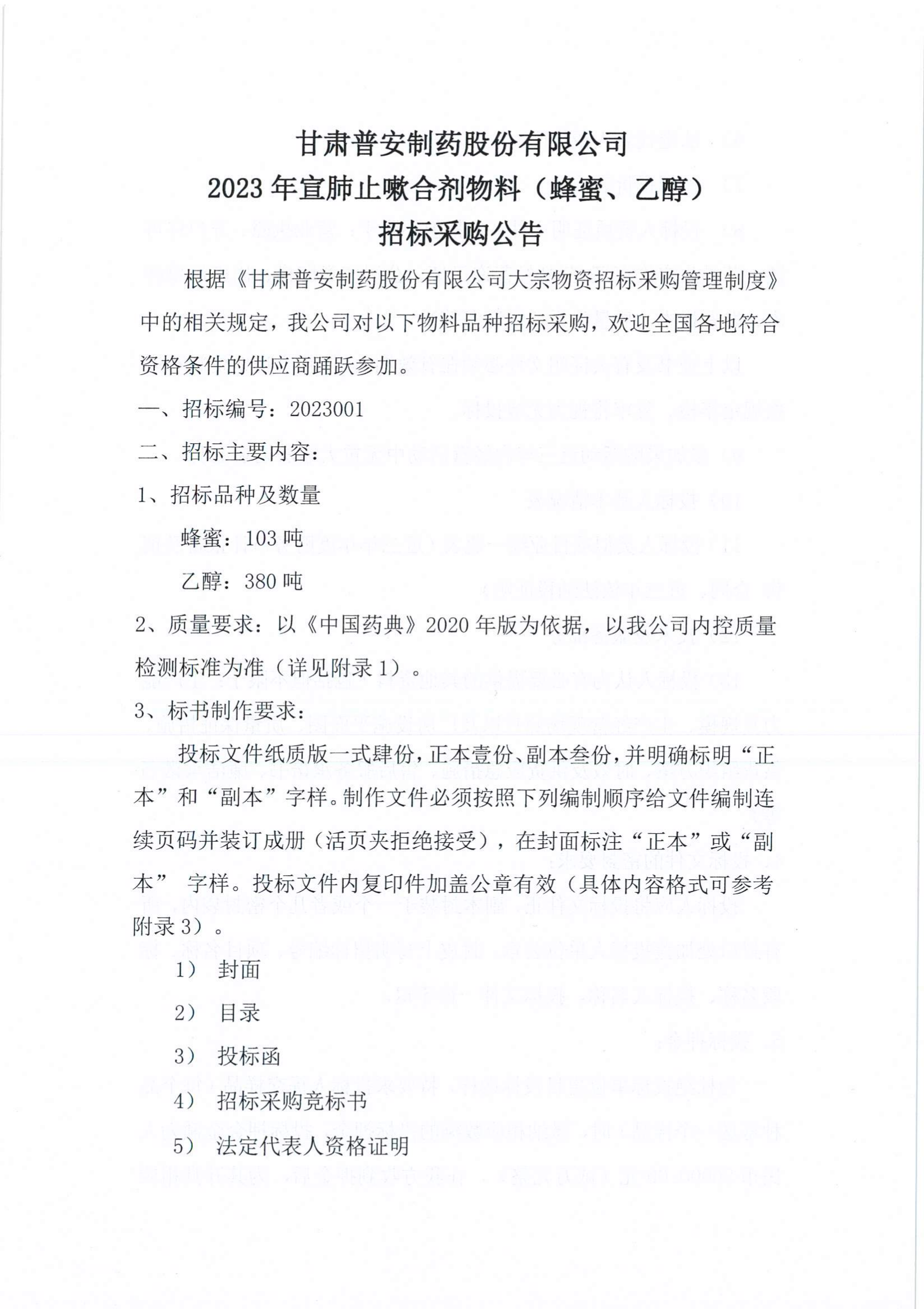 甘肅普安制藥股份有限公司2023年宣肺止嗽合劑物料(蜂蜜、乙醇)招標(biāo)采購(gòu)公告