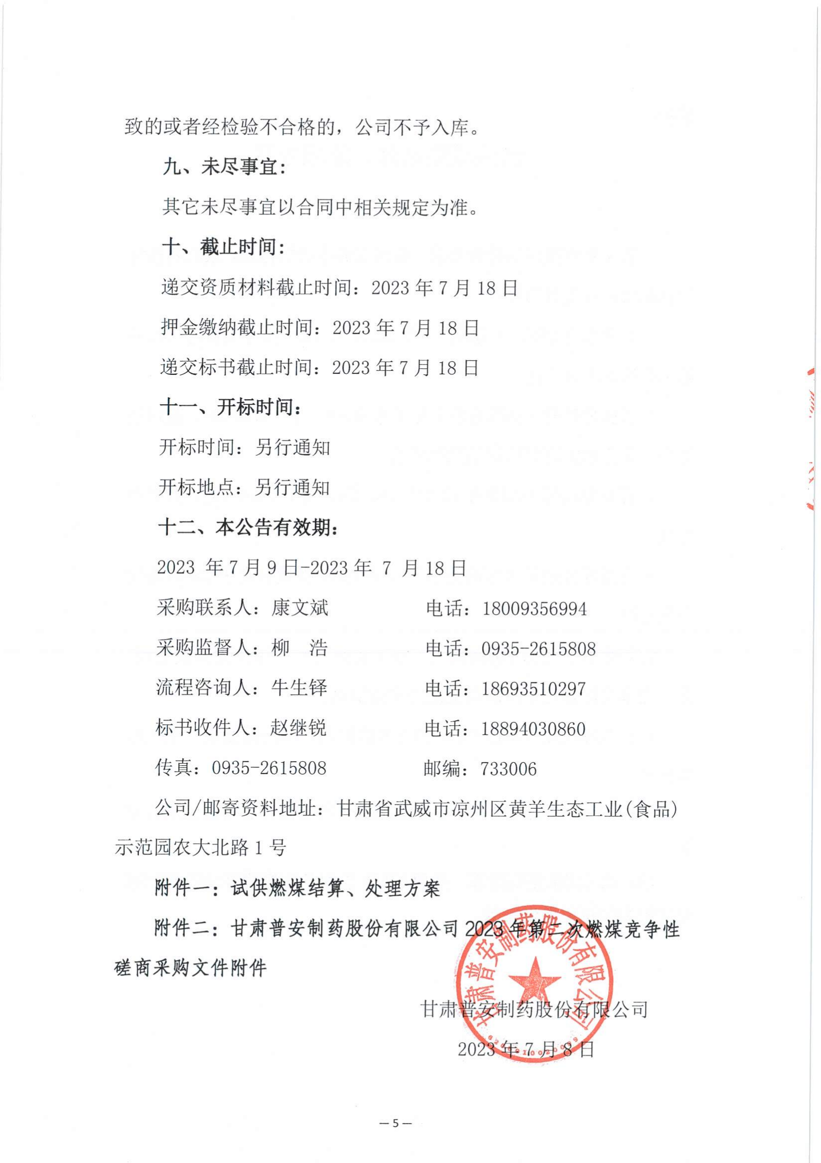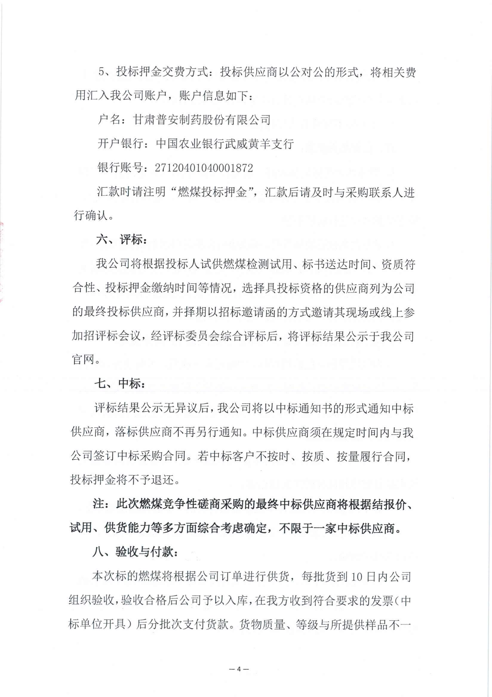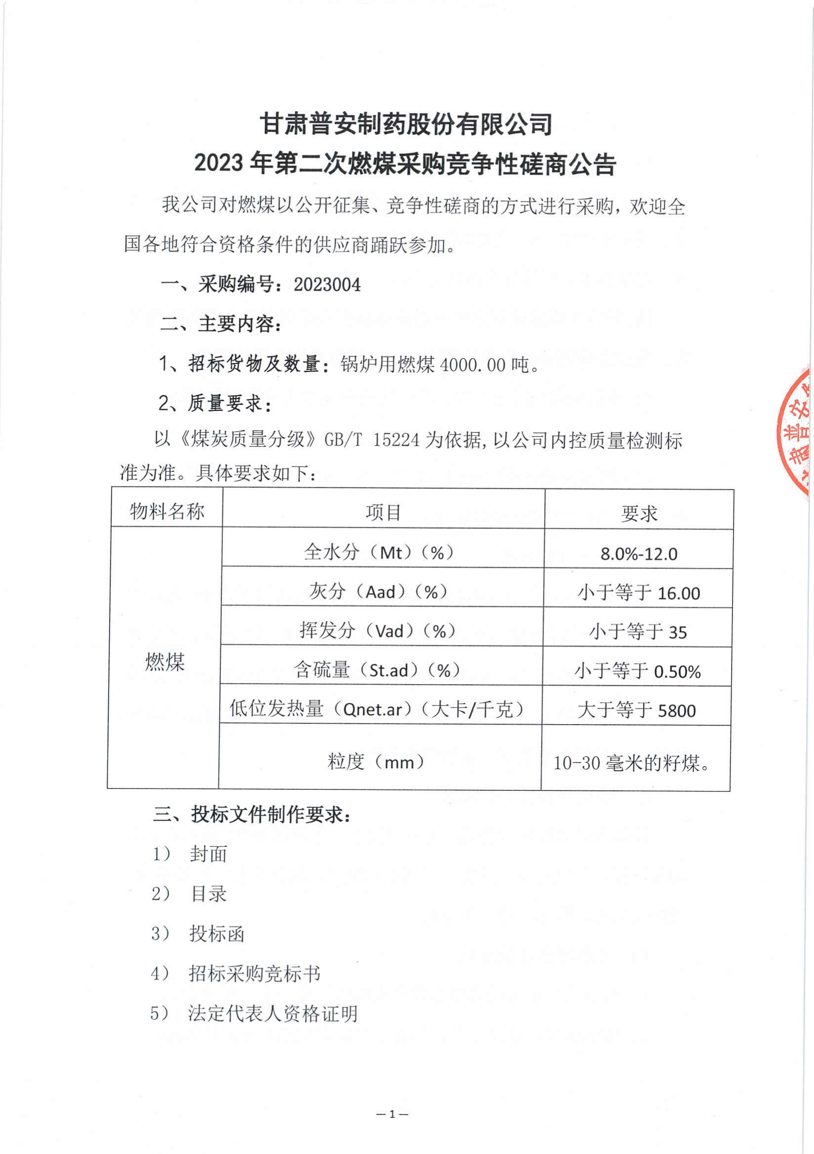 甘肅普安制藥股份有限公司2023年第二次燃煤采購(gòu)競(jìng)爭(zhēng)性磋商公告