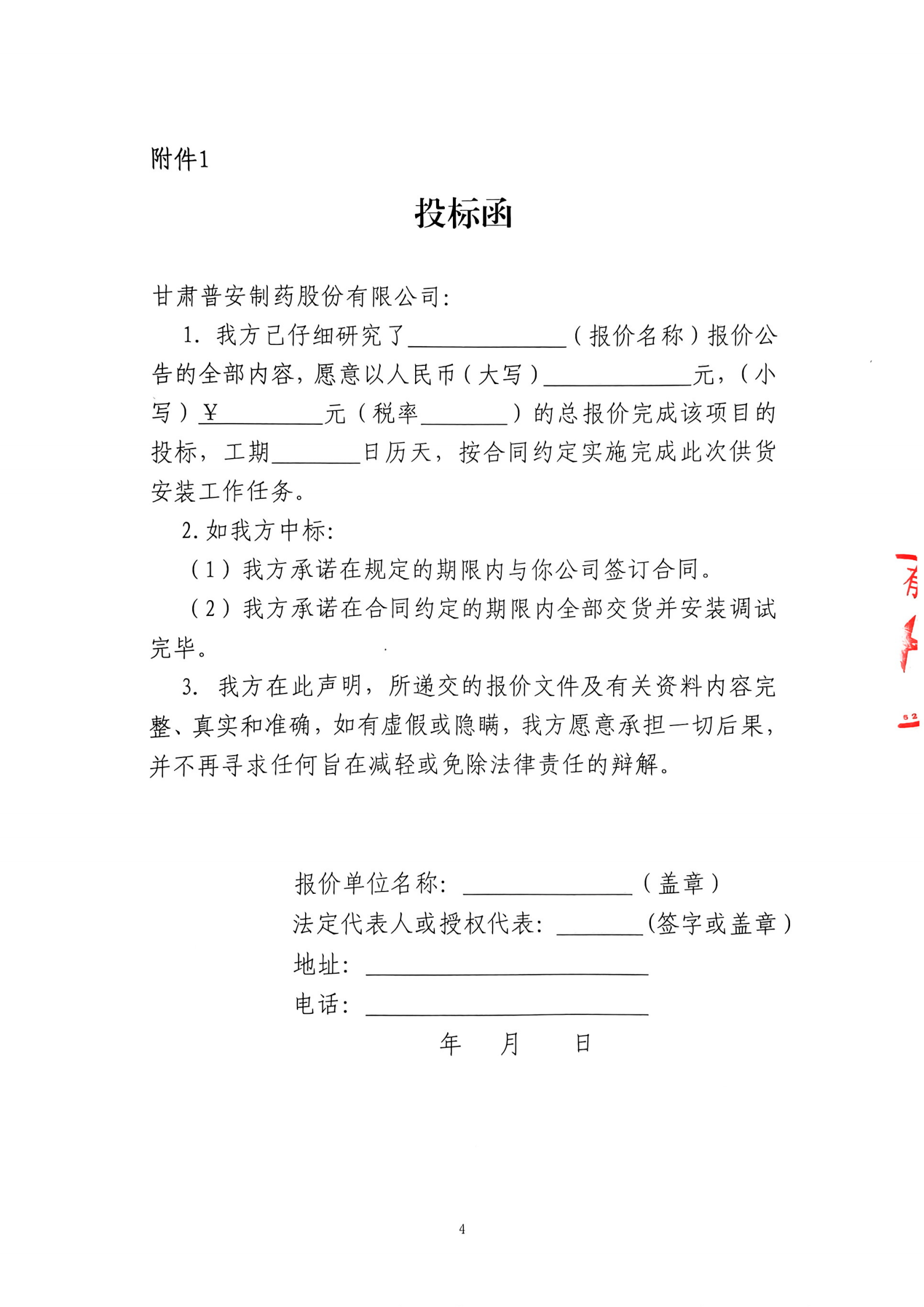 甘肅普安制藥股份有限公司年產5000萬盒(3億支)宣肺止嗽合劑等液體制劑生產線升級改造項目外包車間、庫房新增防火門、快速卷簾門等采購安裝詢價公告