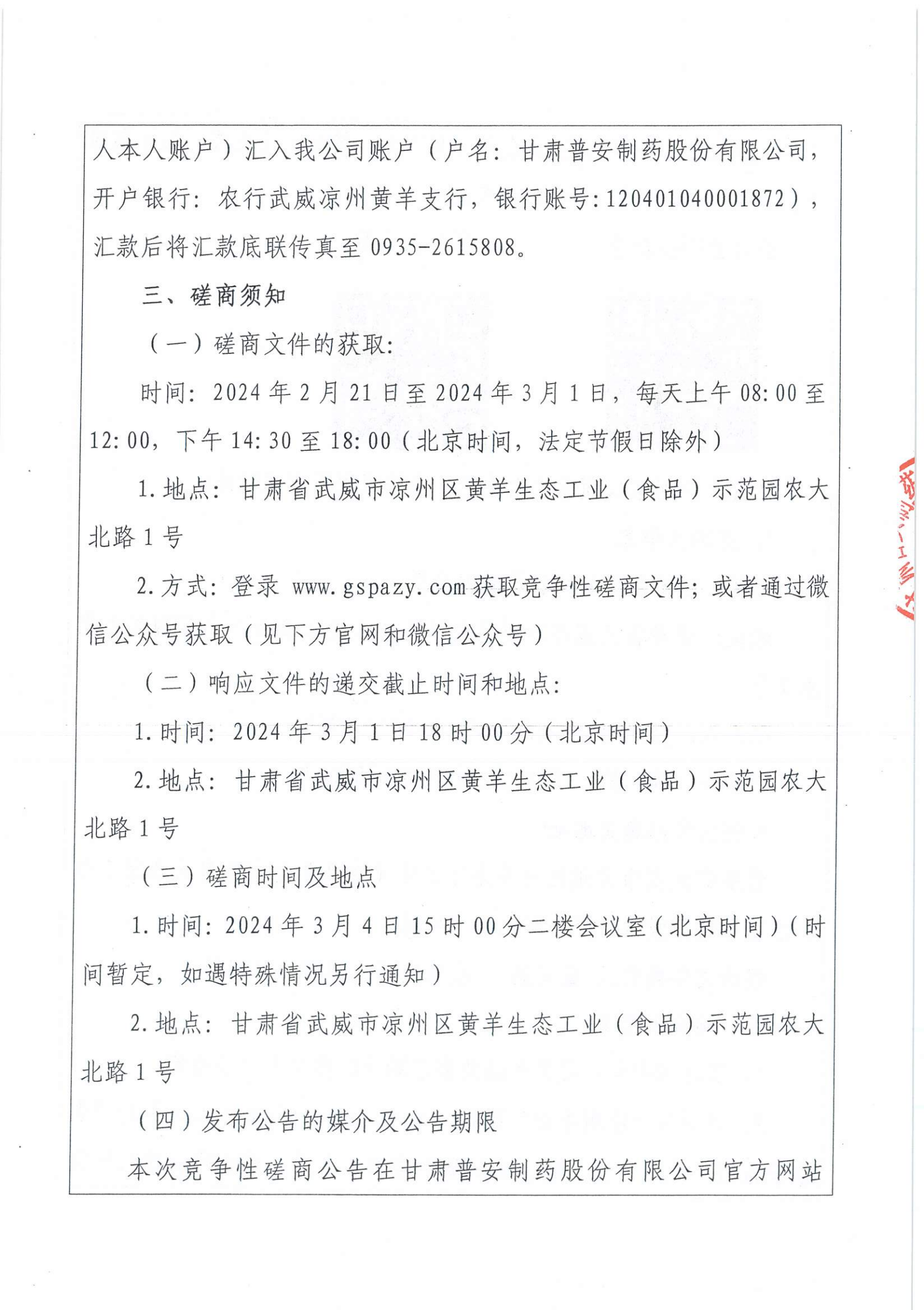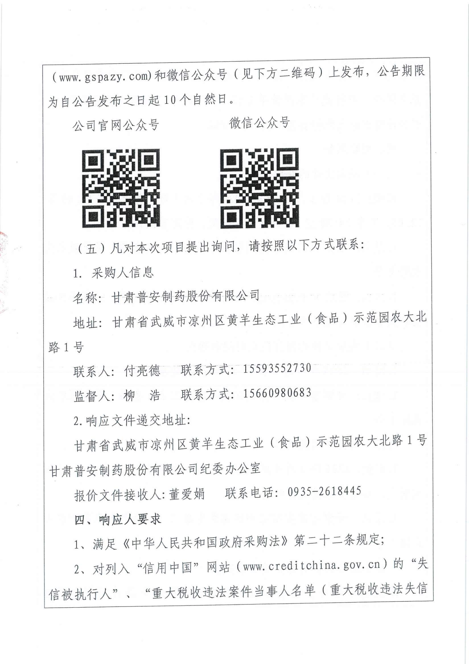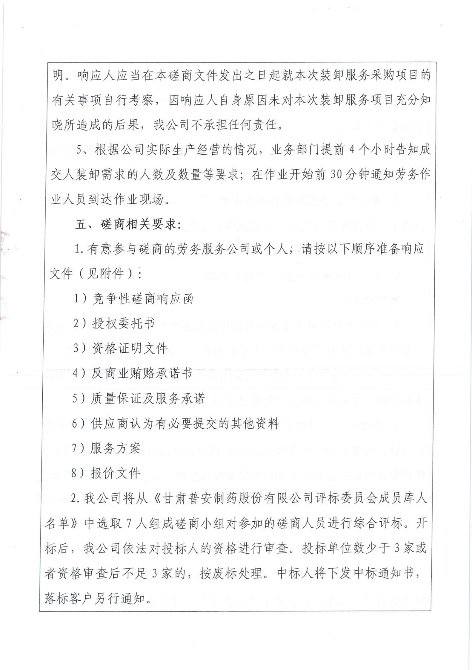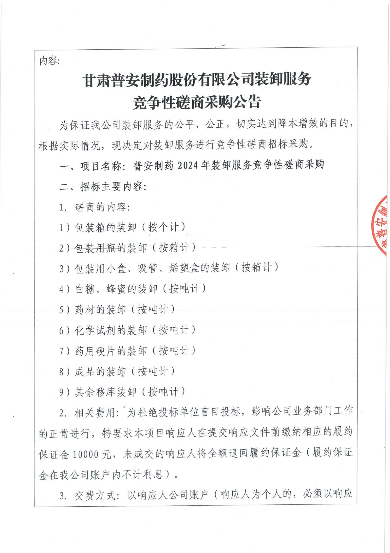 甘肅普安制藥股份有限公司裝卸服務(wù)競爭性磋商采購公告