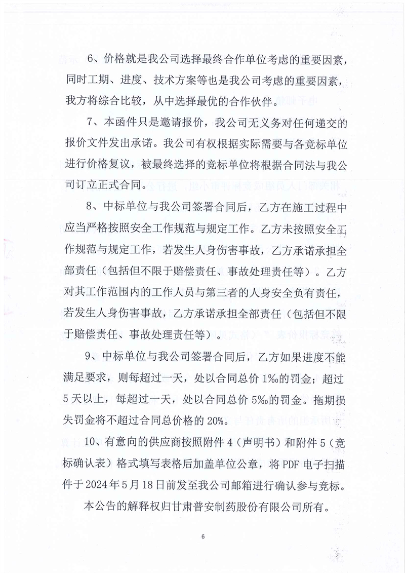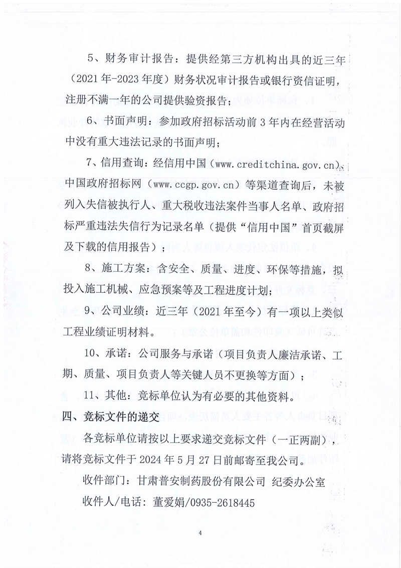 甘肅普安制藥股份有限公司2024年基礎(chǔ)設(shè)施改造項(xiàng)目-舊污水站設(shè)備設(shè)施及廠房拆除工程競(jìng)爭(zhēng)性磋商公告