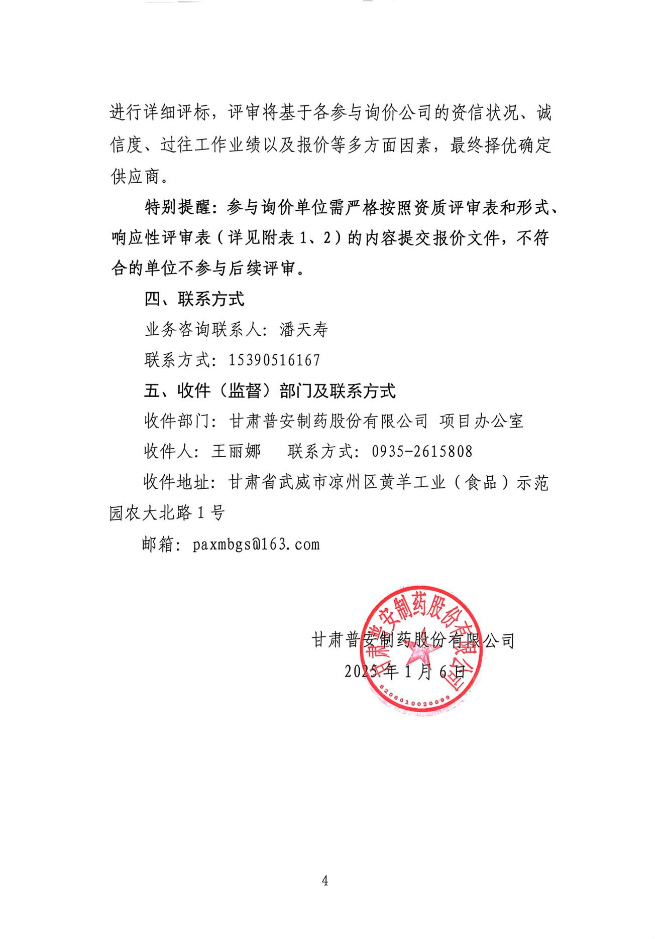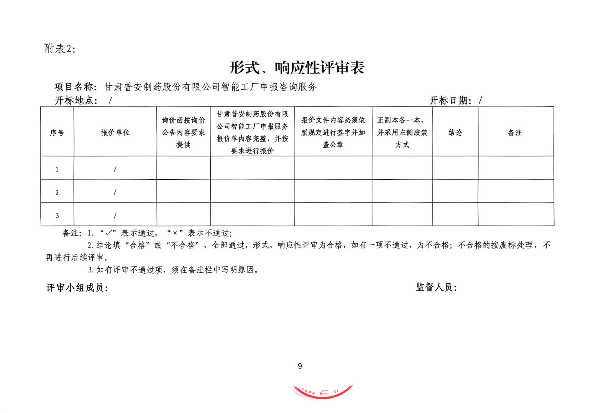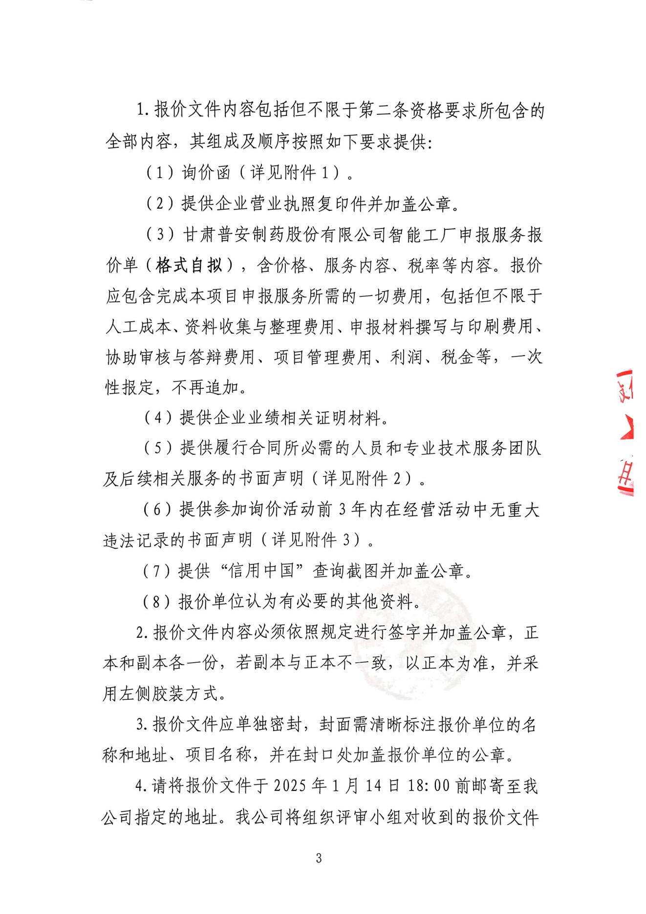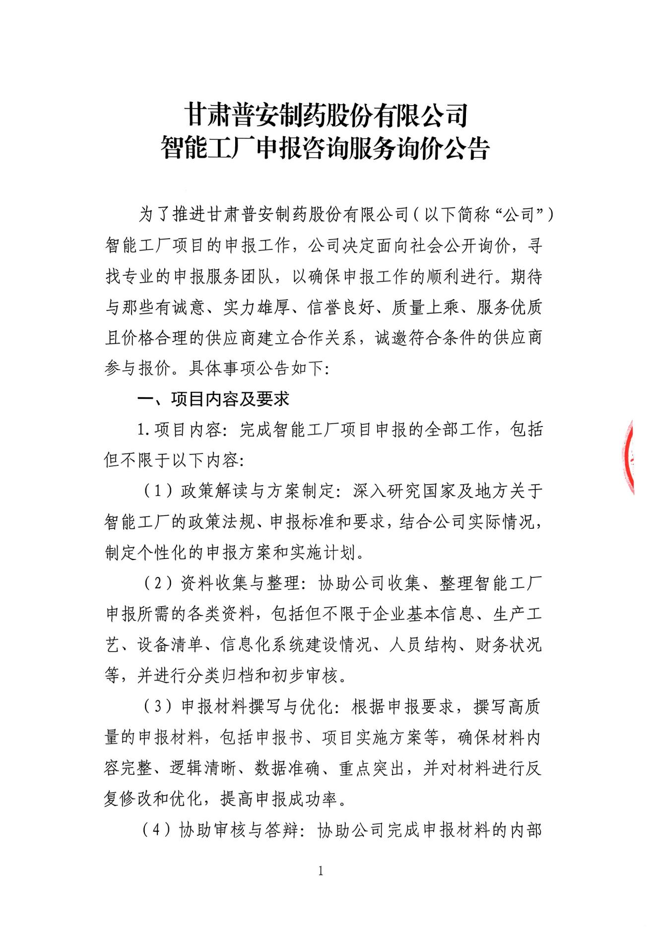 甘肅普安制藥股份有限公司智能工廠申報(bào)咨詢(xún)服務(wù)詢(xún)價(jià)公告