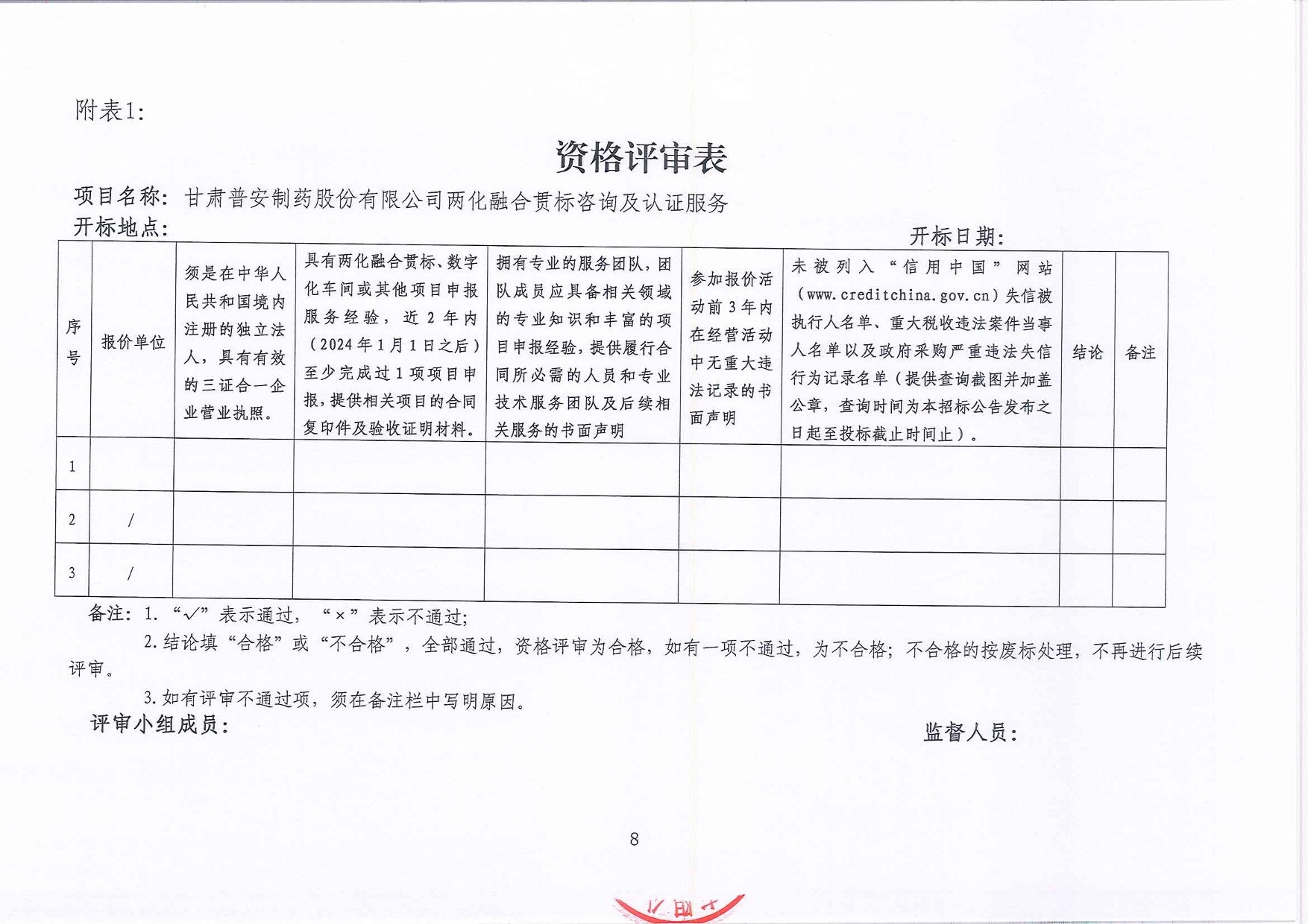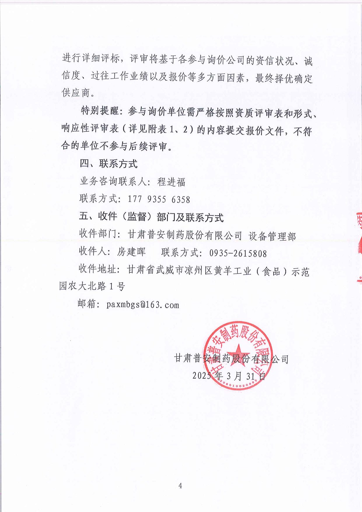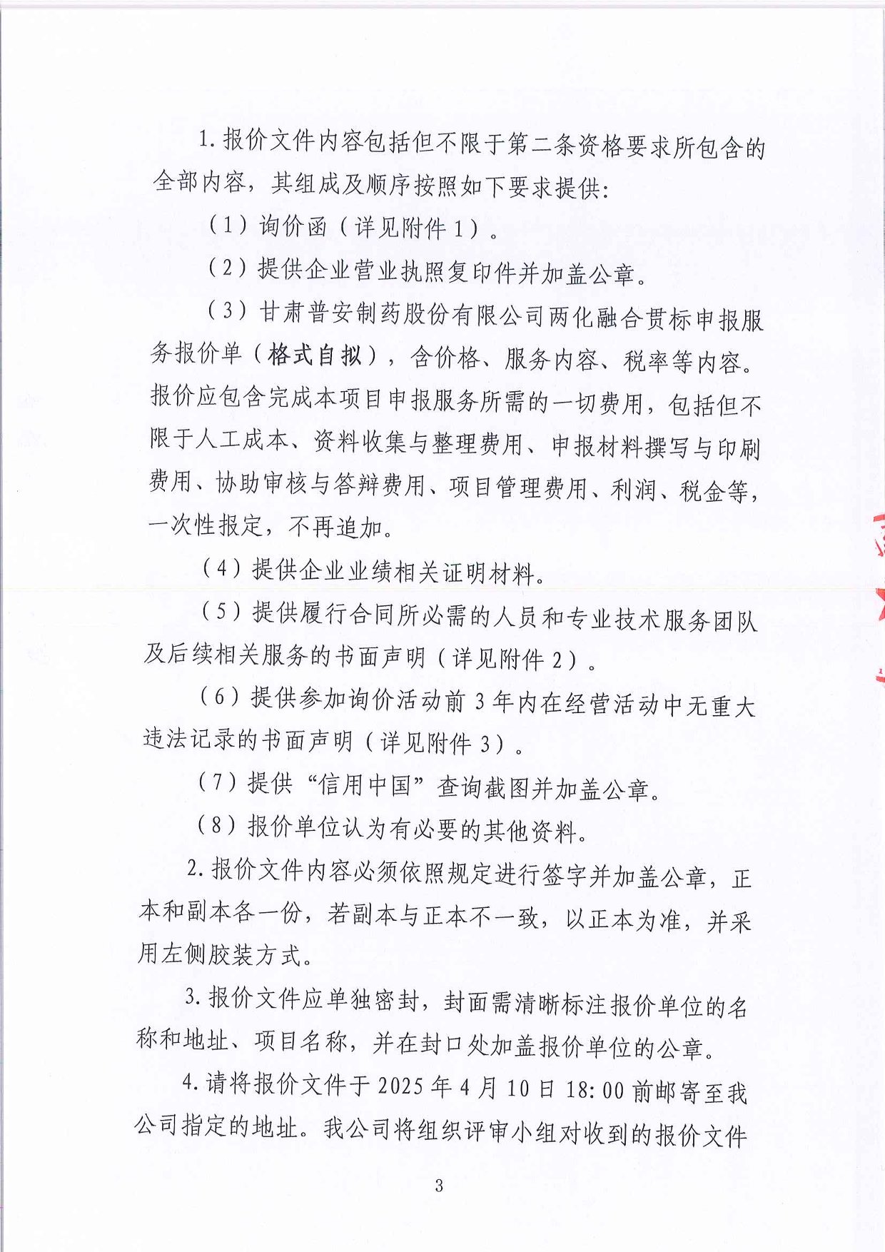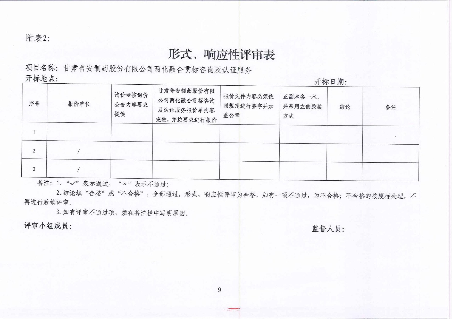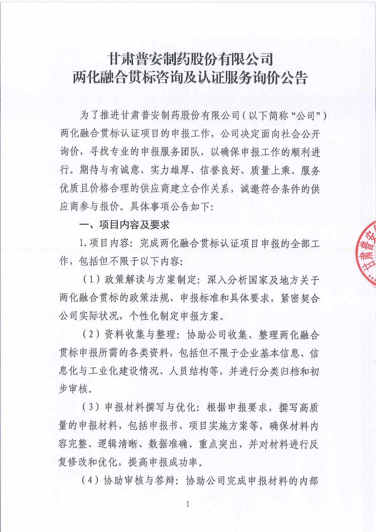 甘肅普安制藥股份有限公司兩化融合貫標(biāo)咨詢及認(rèn)證服務(wù)詢價(jià)公告