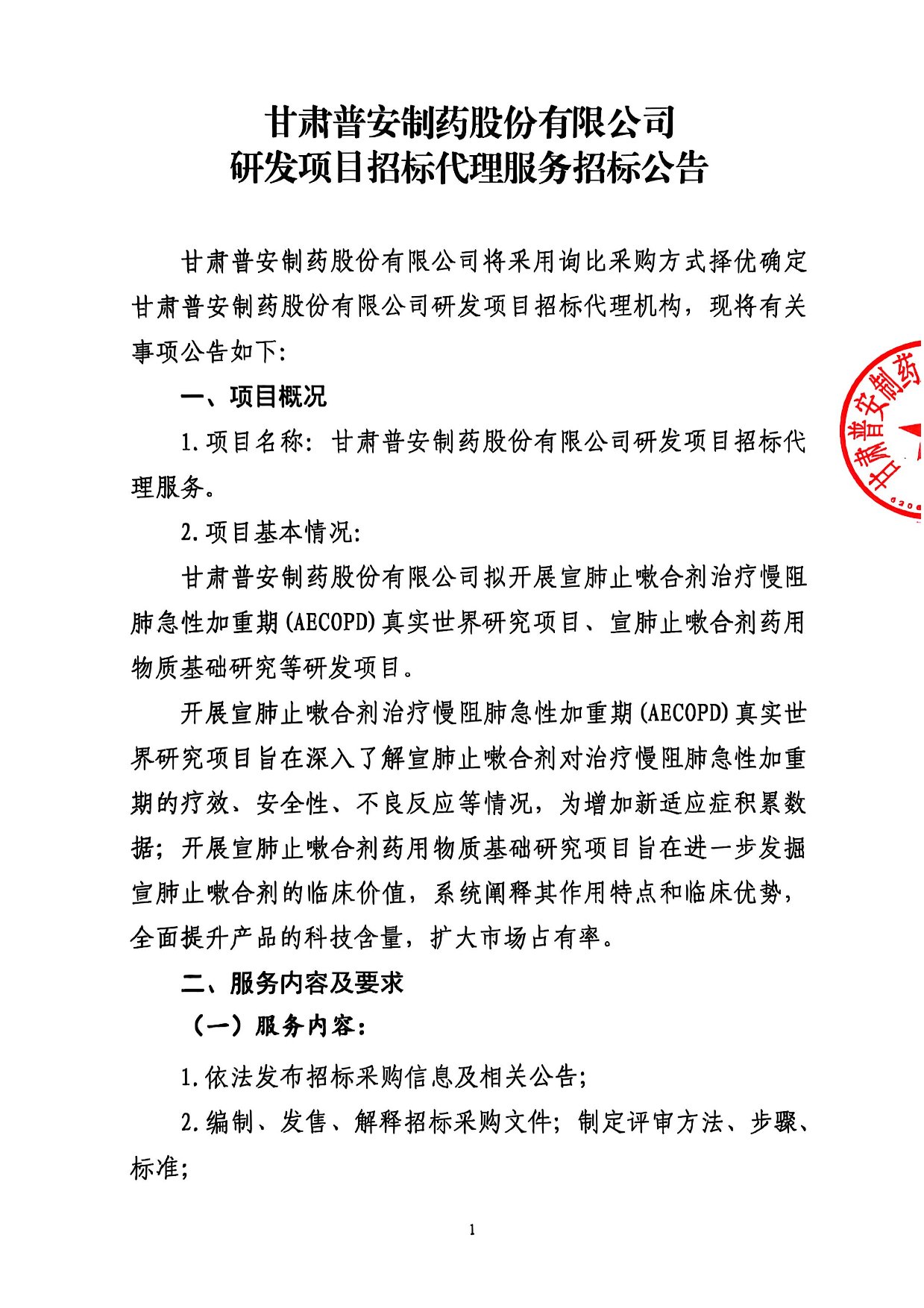甘肅普安制藥股份有限公司研發(fā)項(xiàng)目招標(biāo)代理服務(wù)招標(biāo)公告