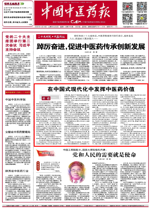 【中國(guó)中醫(yī)藥報(bào)社論】在中國(guó)式現(xiàn)代化中發(fā)揮中醫(yī)藥價(jià)值