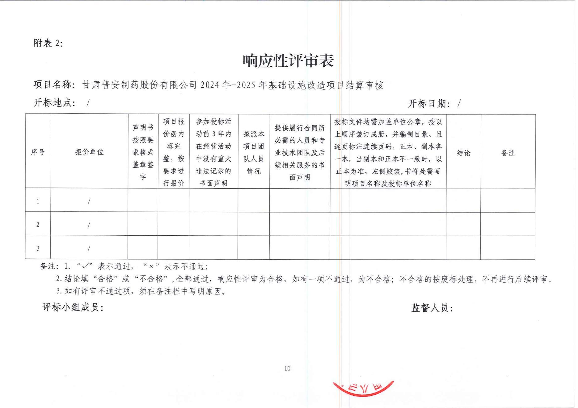 甘肅普安制藥股份有限公司2024年-2025年基礎(chǔ)設(shè)施改造項目結(jié)算審核服務(wù)招標(biāo)公告