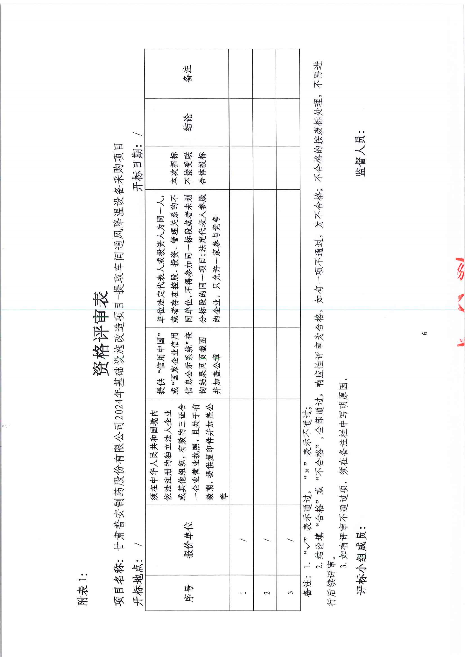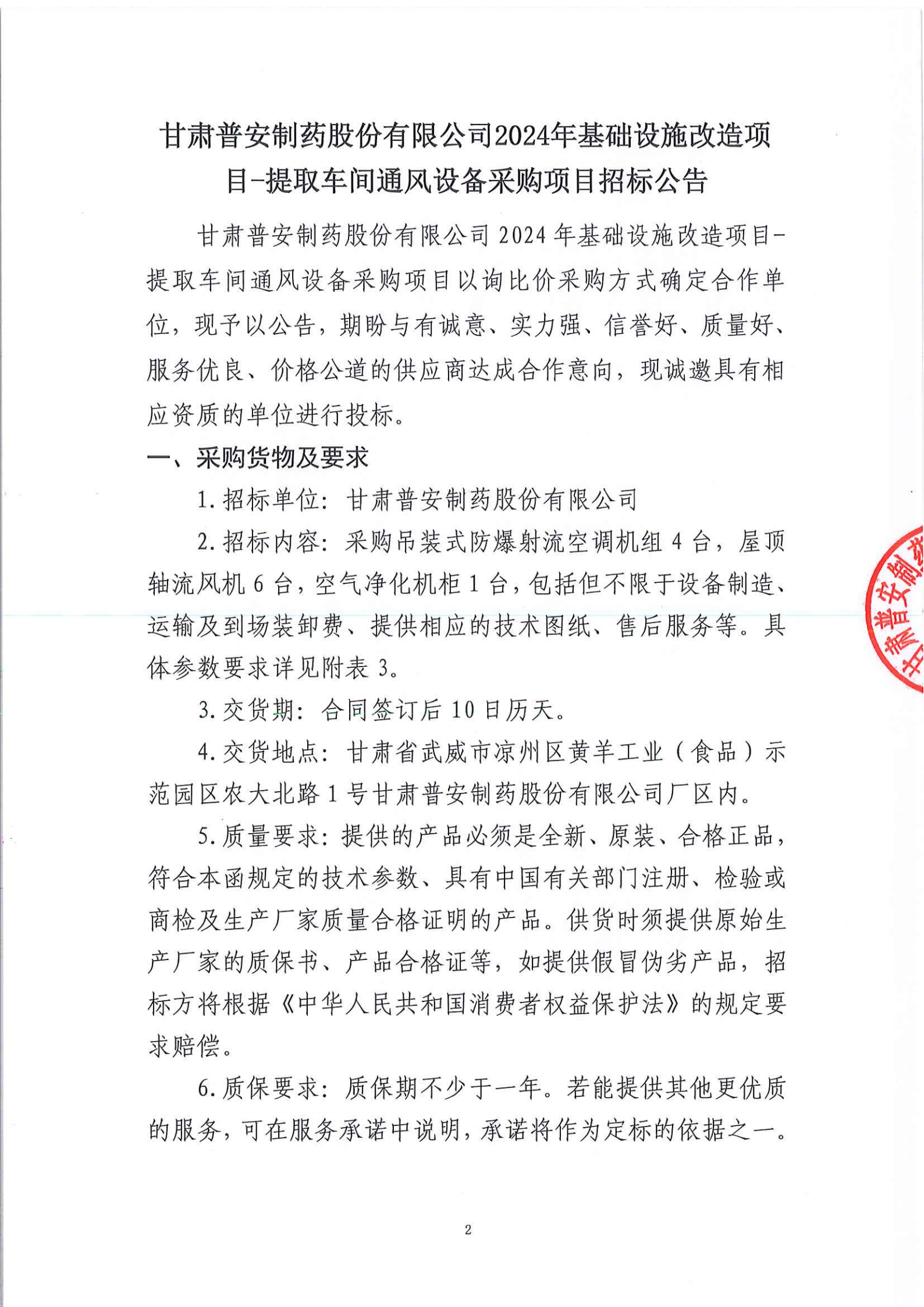 甘肅普安制藥股份有限公司2024年基礎(chǔ)設(shè)施改造項(xiàng)目-提取車間通風(fēng)設(shè)備采購項(xiàng)目招標(biāo)公告