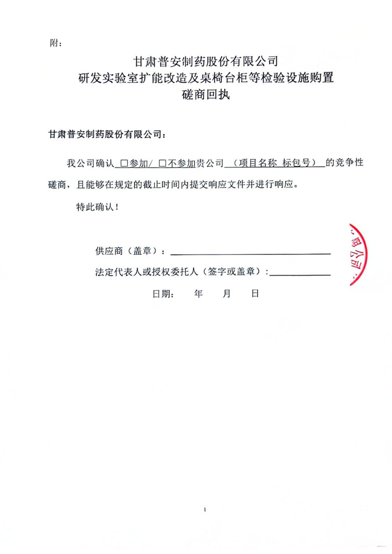 甘肅普安制藥股份有限公司研發(fā)實驗室擴(kuò)能改造及桌椅臺柜等檢驗設(shè)施購置競爭性磋商公告