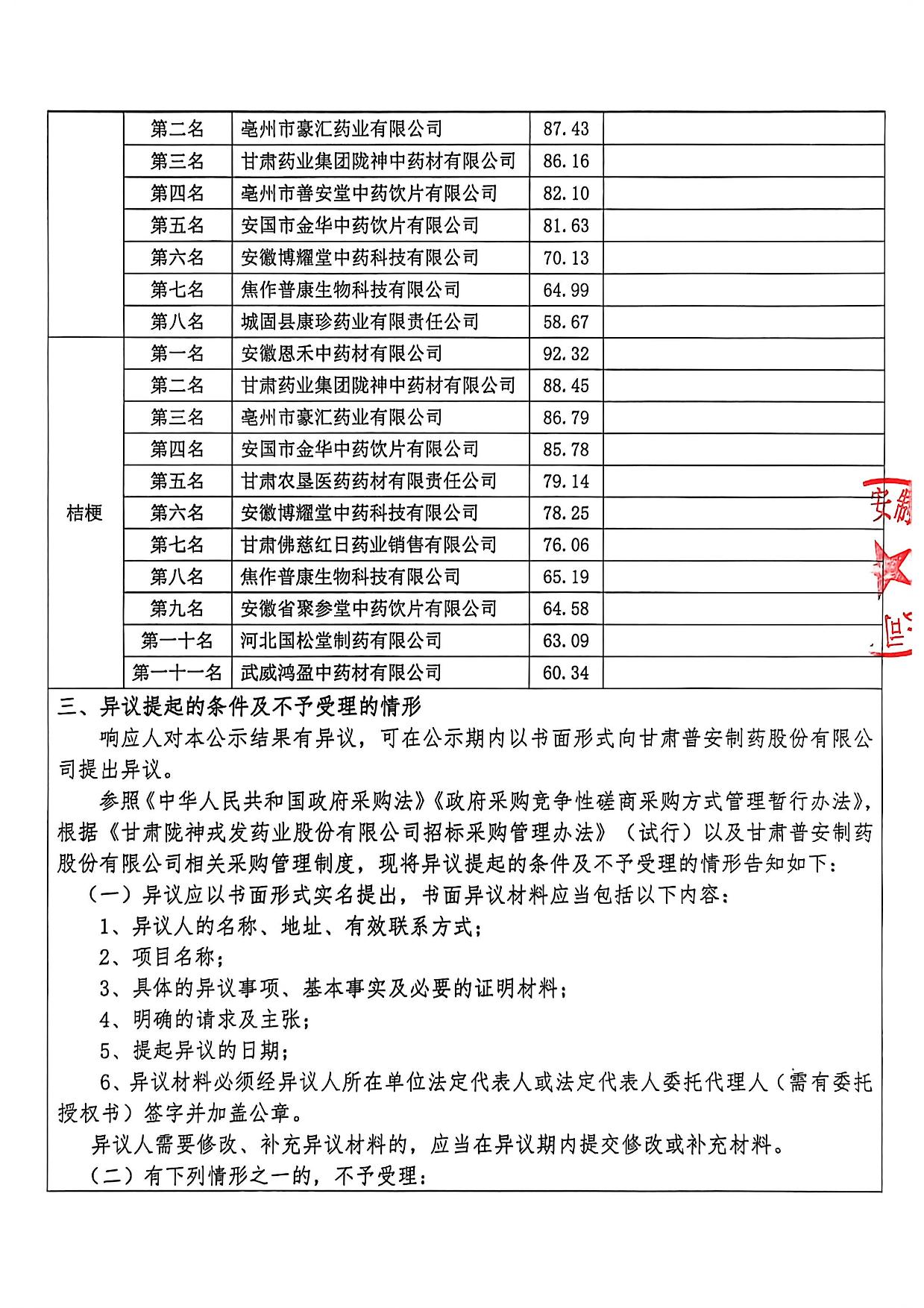 甘肅普安制藥股份有限公司2026年度宣肺止嗽合劑中藥材采購評審結(jié)果公示
